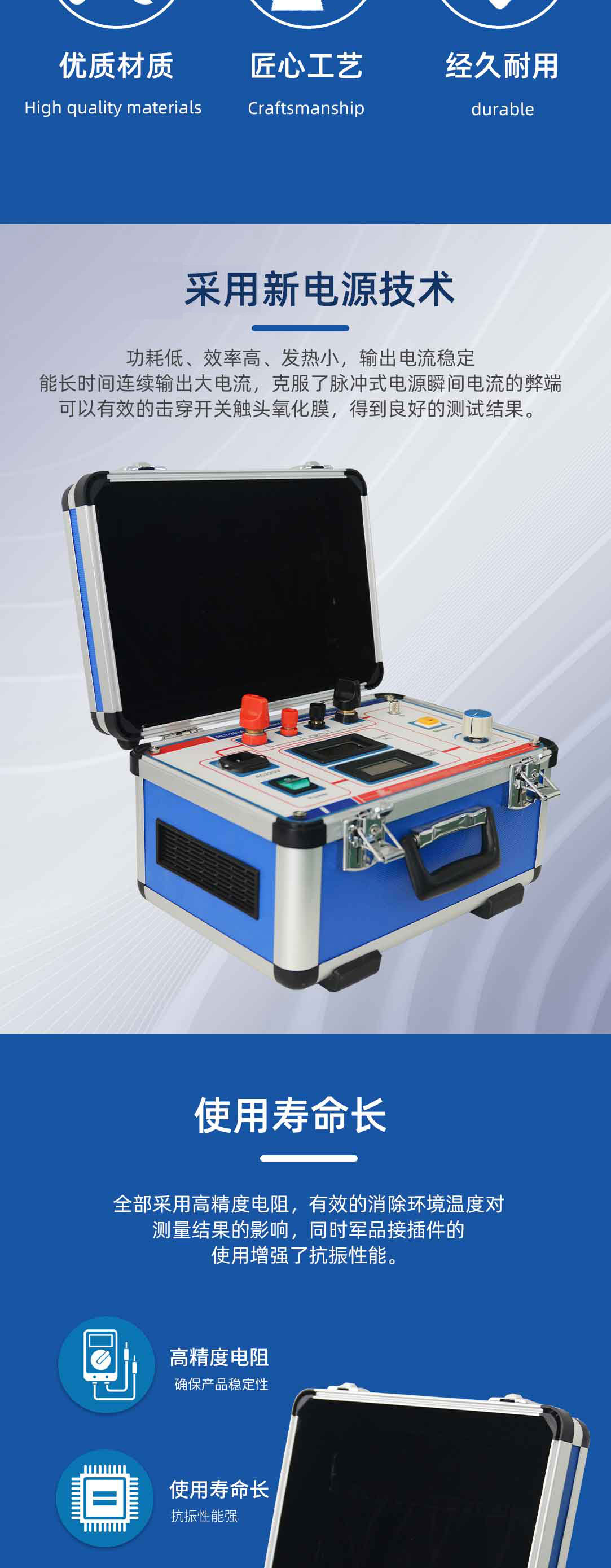 回路電阻測(cè)試儀,適用于高低壓開關(guān)接觸(回路)電阻、電纜線路直流電阻值的高精度測(cè)量,同樣適用于其它需要大電流、微電阻測(cè)量的場合。參考標(biāo)準(zhǔn):DL/T845.4—2004